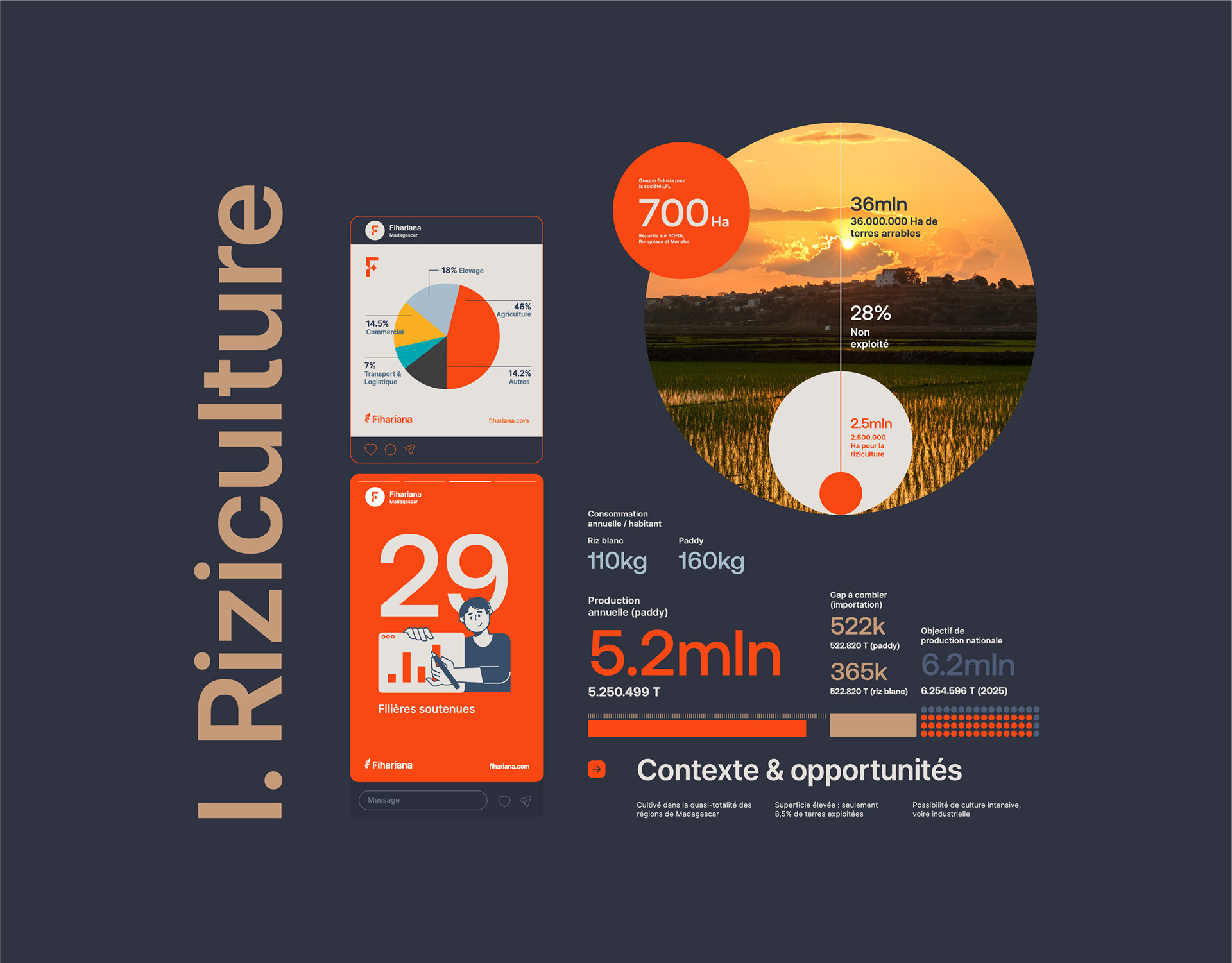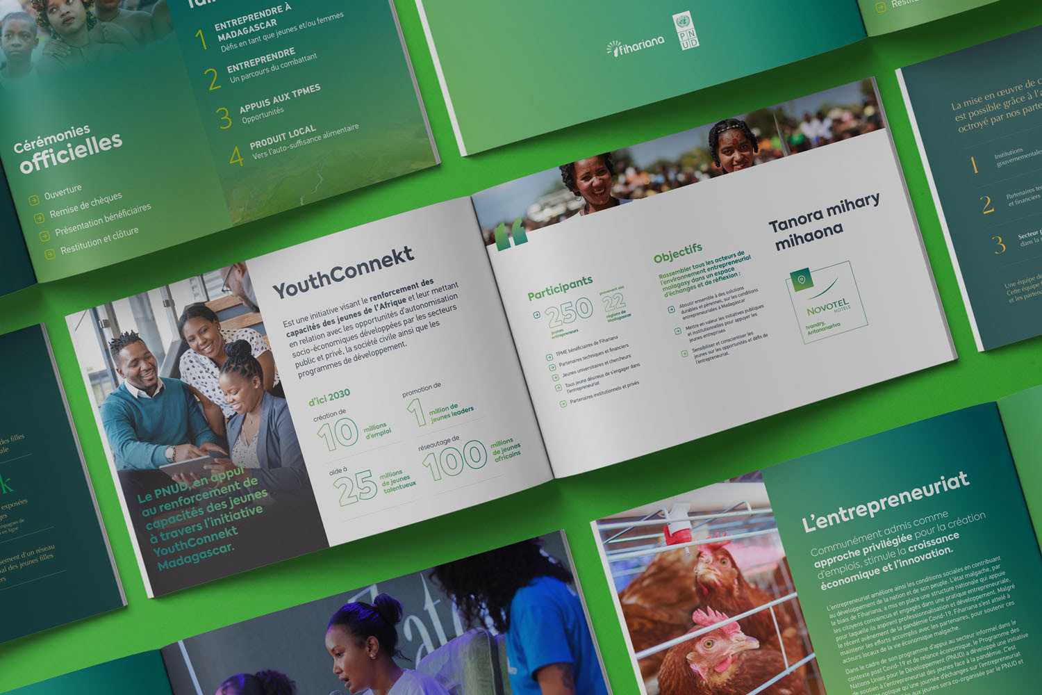 Fihariana se distingue par son approche inclusive et innovante. Axé sur l’autonomisation des jeunes et des femmes, le programme leur offre des opportunités équitables pour transformer leurs idées en projets concrets. Le Programme National a donc sollicité nos services pour, entre autres, piloter et refondre leur logo et identité visuelle, créer du contenu, mettre en page des présentations, réaliser des photographies, ainsi que produire divers contenus vidéo et animations valorisant leurs produits et leurs actions.